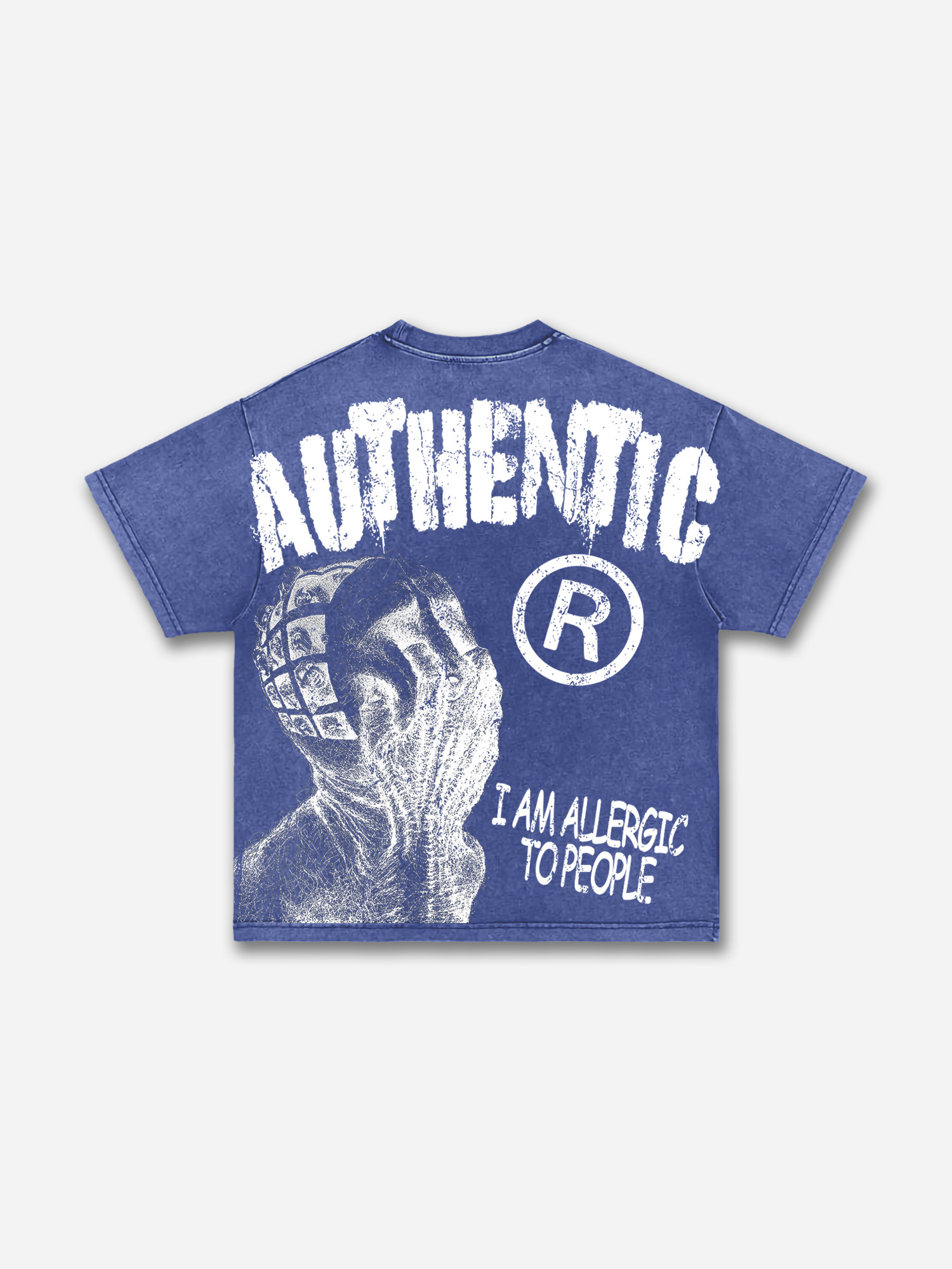 Vintage I Am Allergic To People Graphic Print Acid Wash T-shirt
