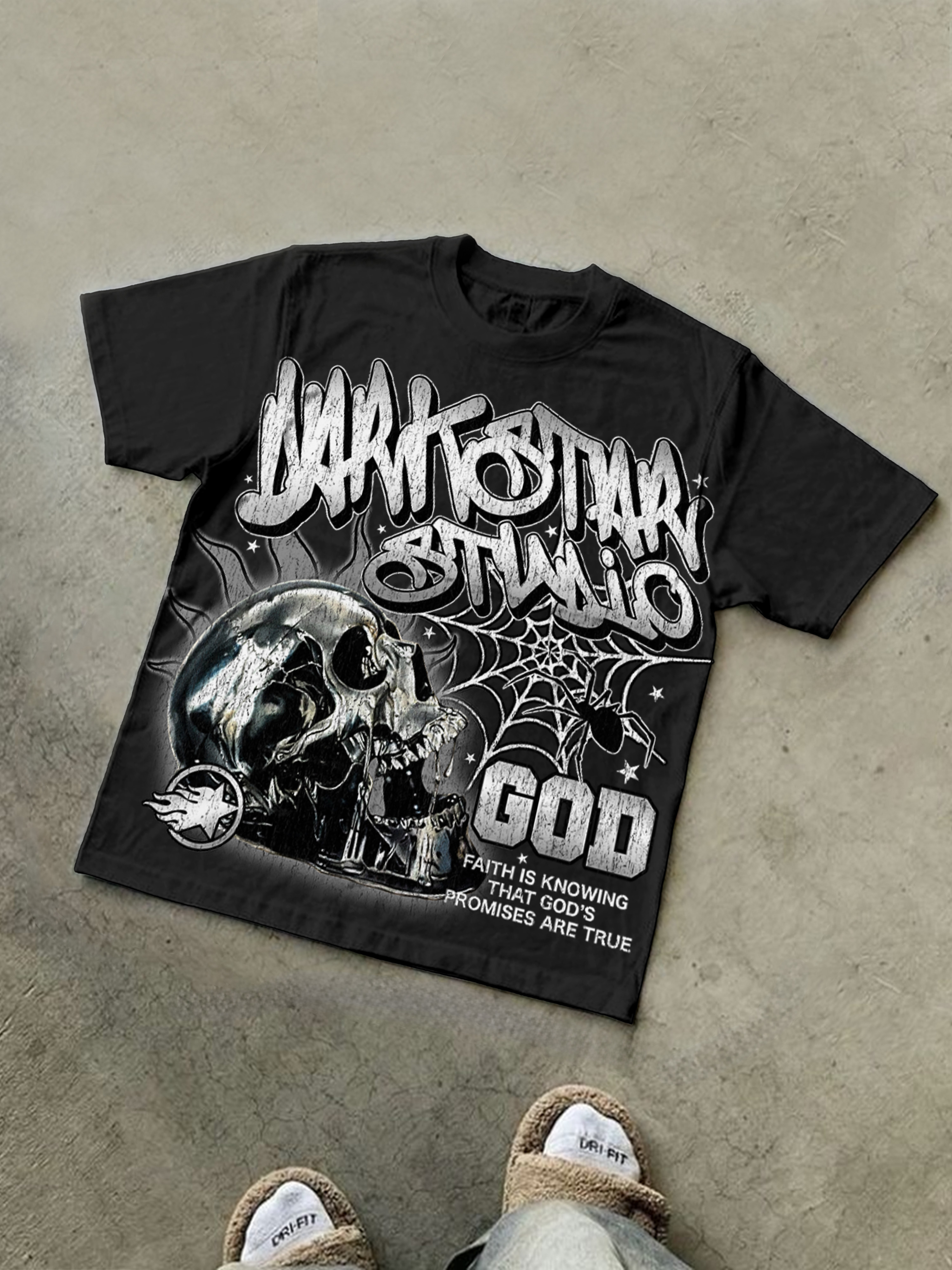 Hellxcity Darkstar-God's Skull Print Pattern Cotton T-Shirt