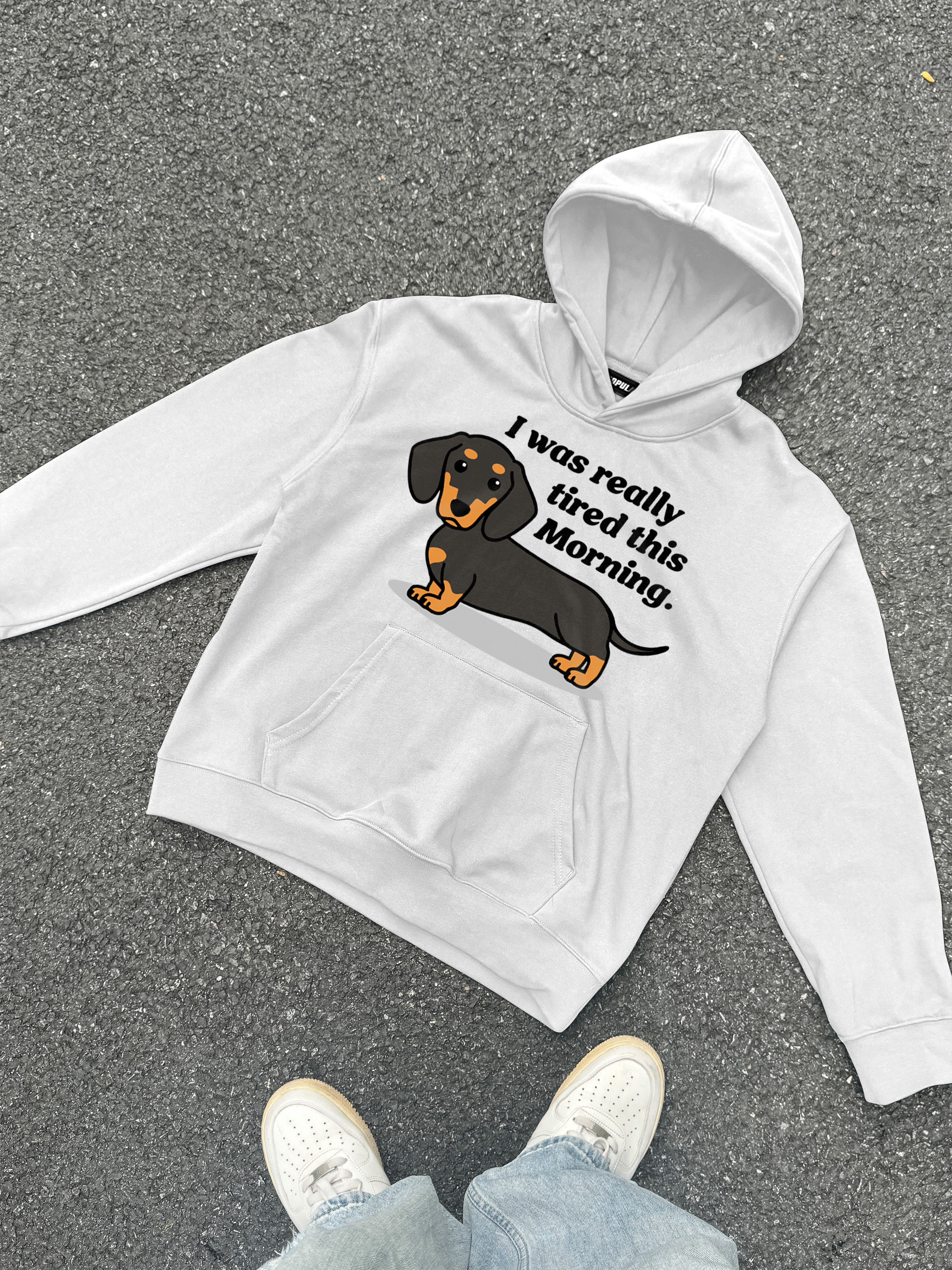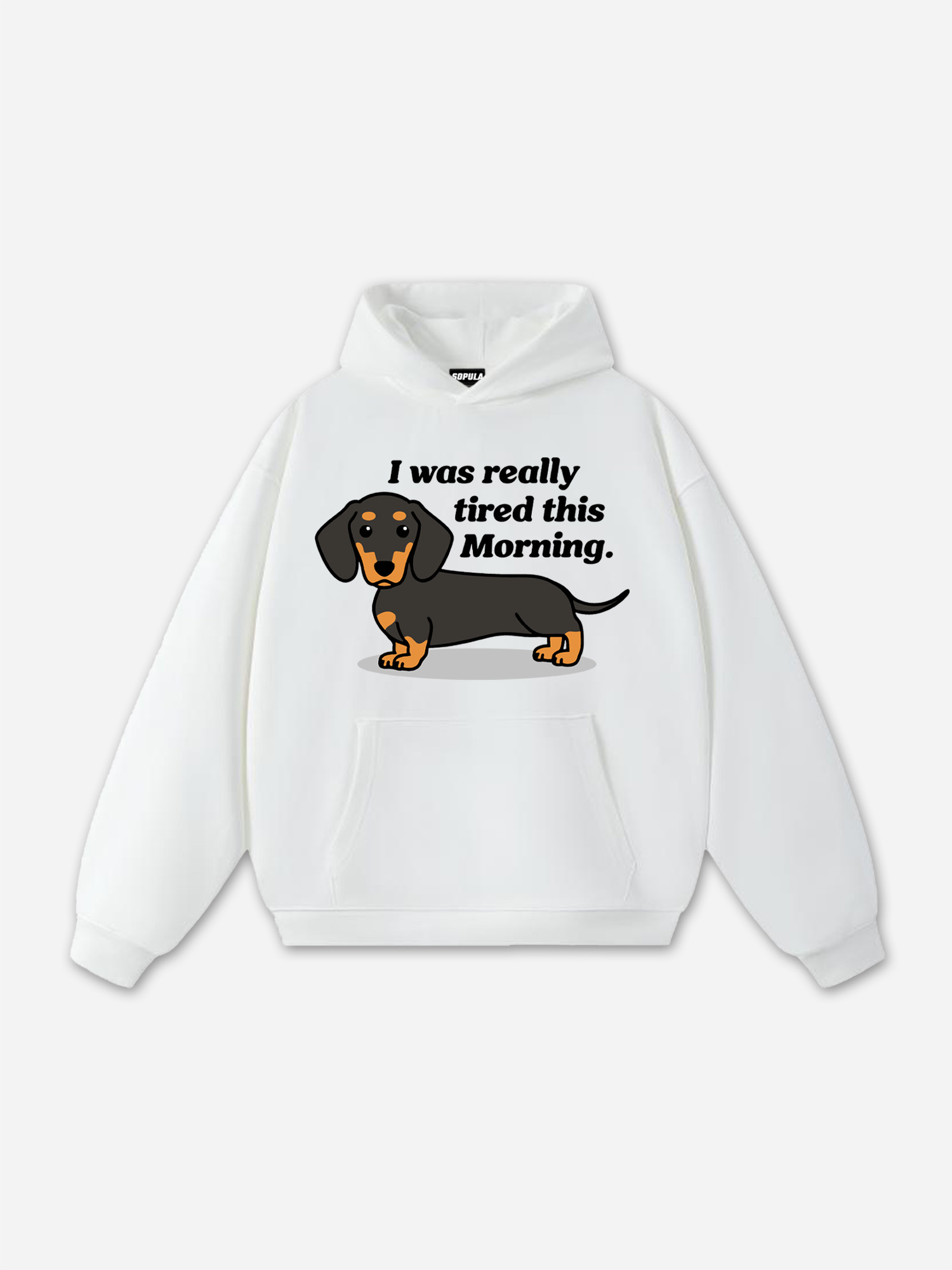 Hellxcity Exhausted Dachshund Cartoon Graphic Oversized Hoodie
