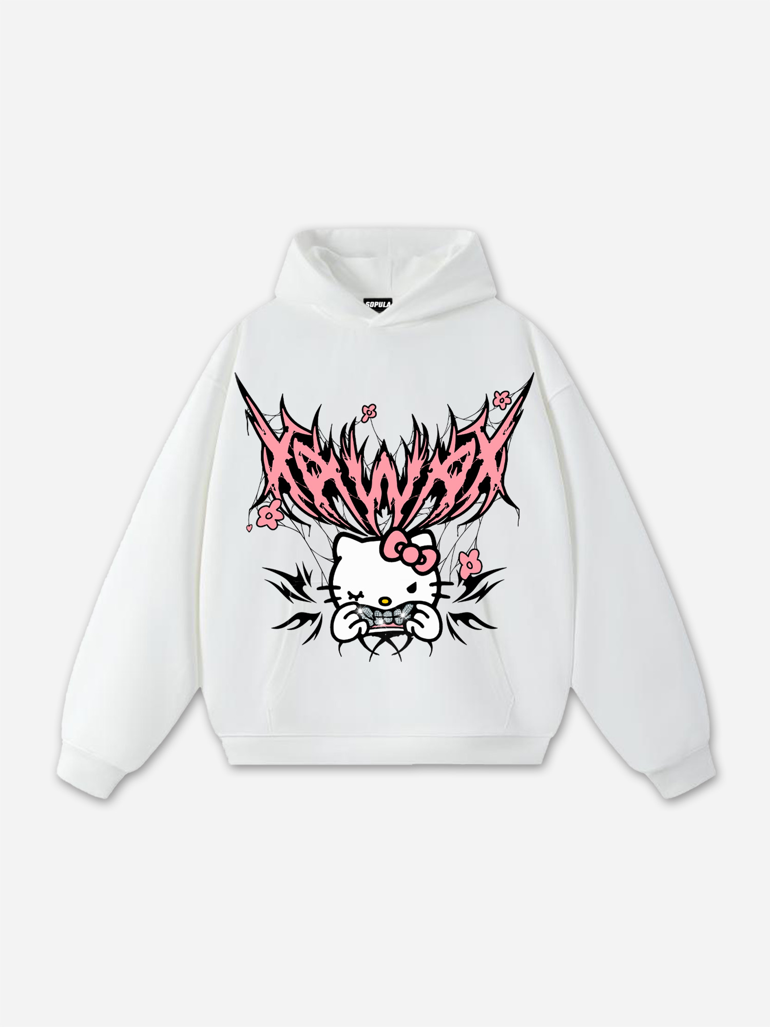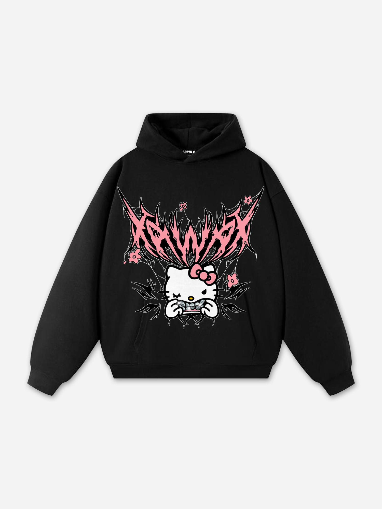 Hellxcity Y2k Goth Street Katie Cat Graphic Oversized Hoodie