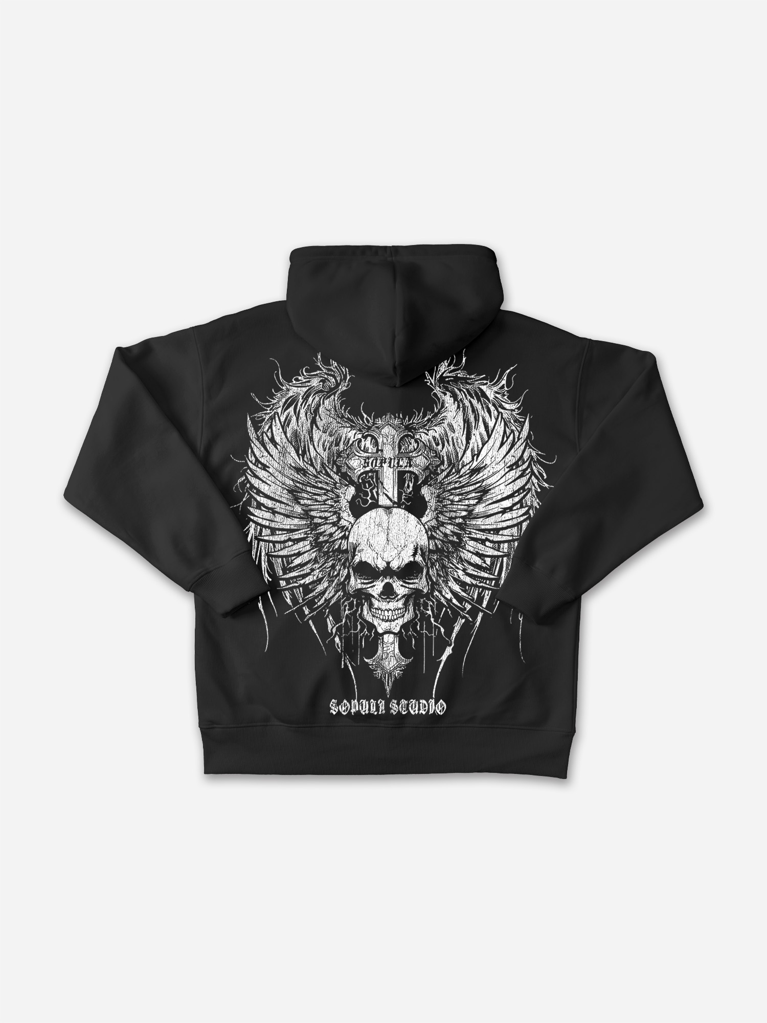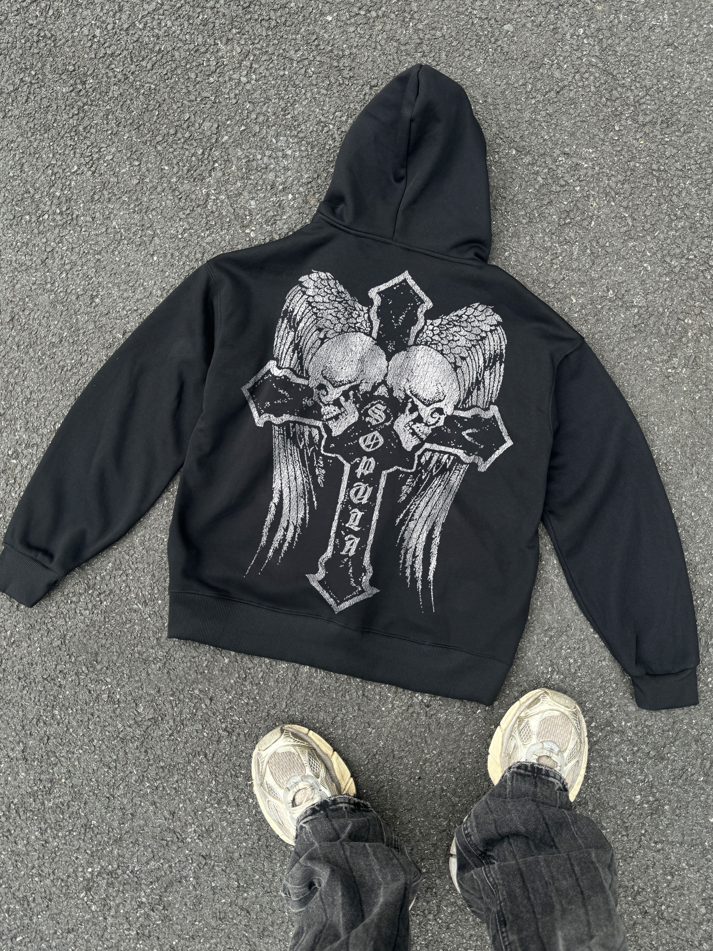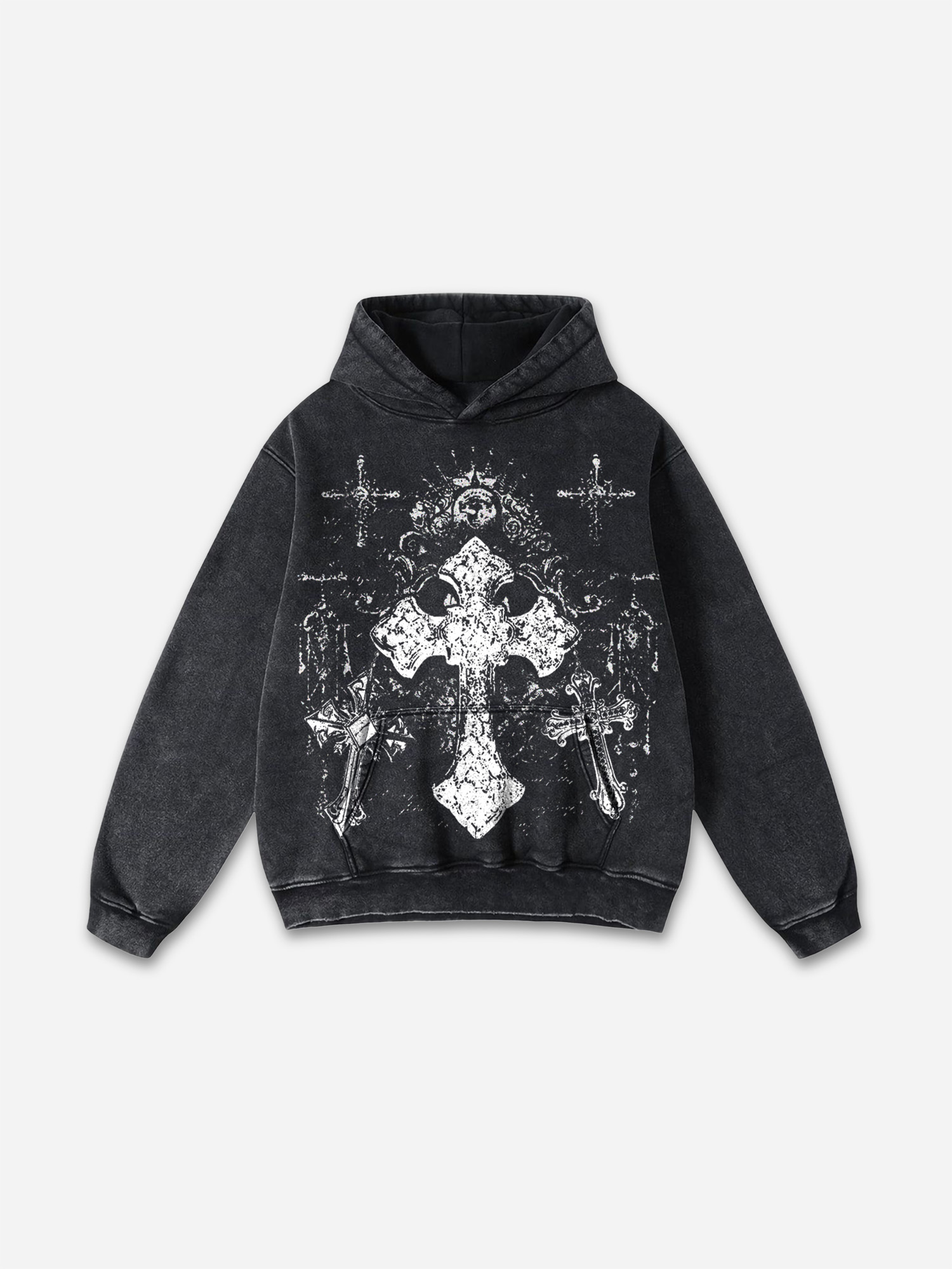 Hellxcity Classic Artistic Cross Graphic Acid Wash Oversized Hoodie