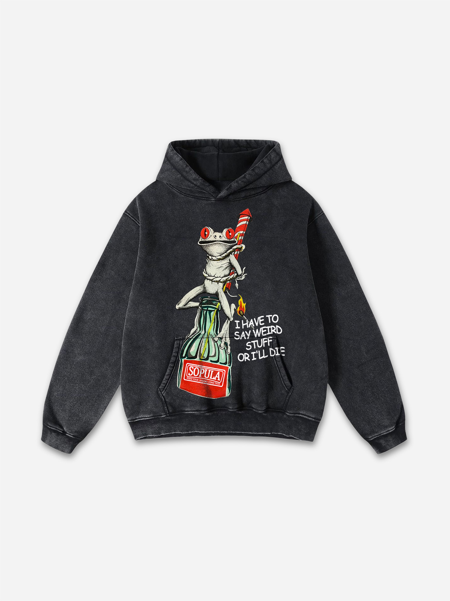Hellxcity I Have To Say Weird Stuff Graphic Acid Wash Oversized Hoodie