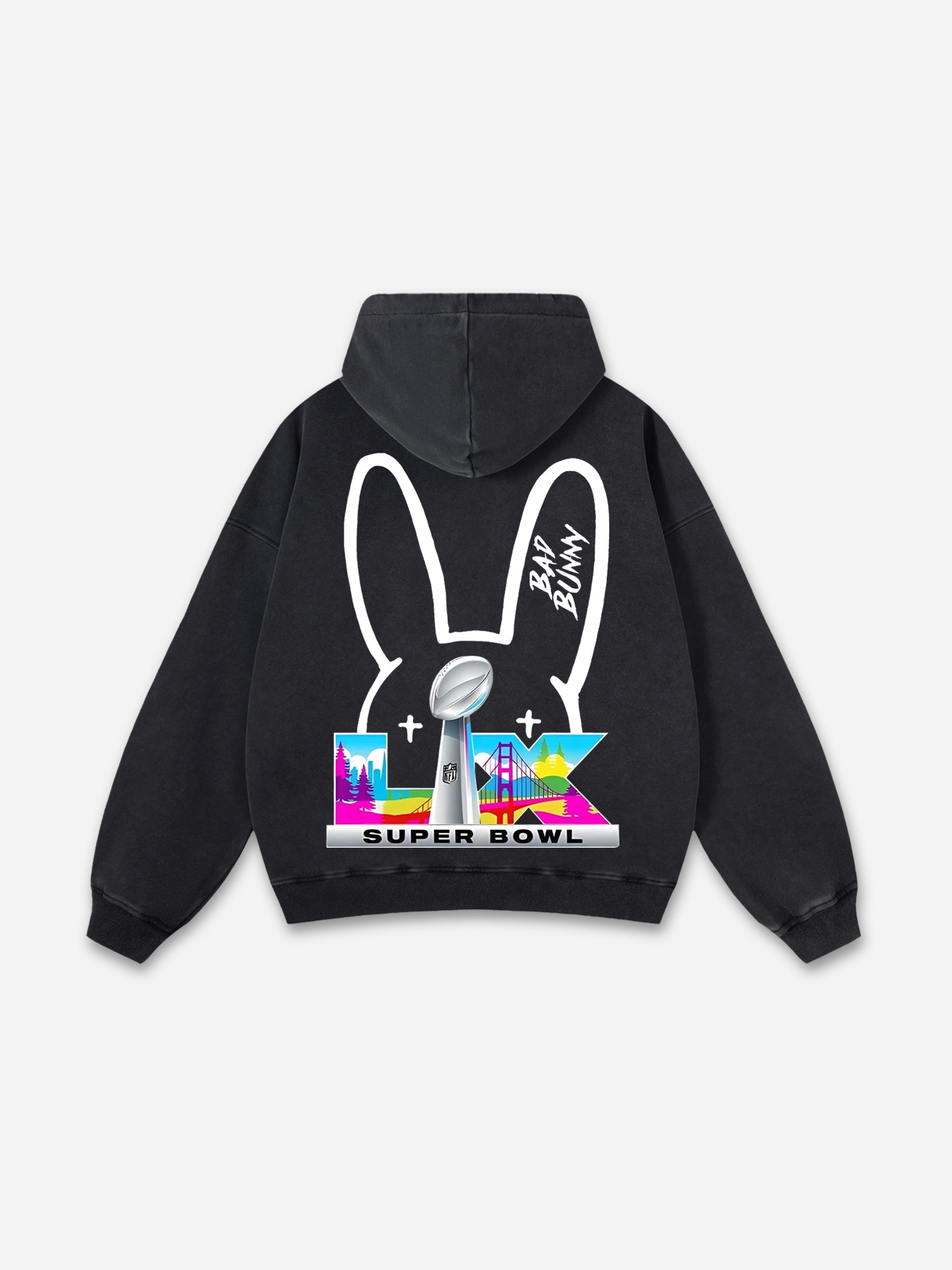 Hellxcity Bad Bunny Benito Bowl Graphic Acid Wash Oversized Hoodie
