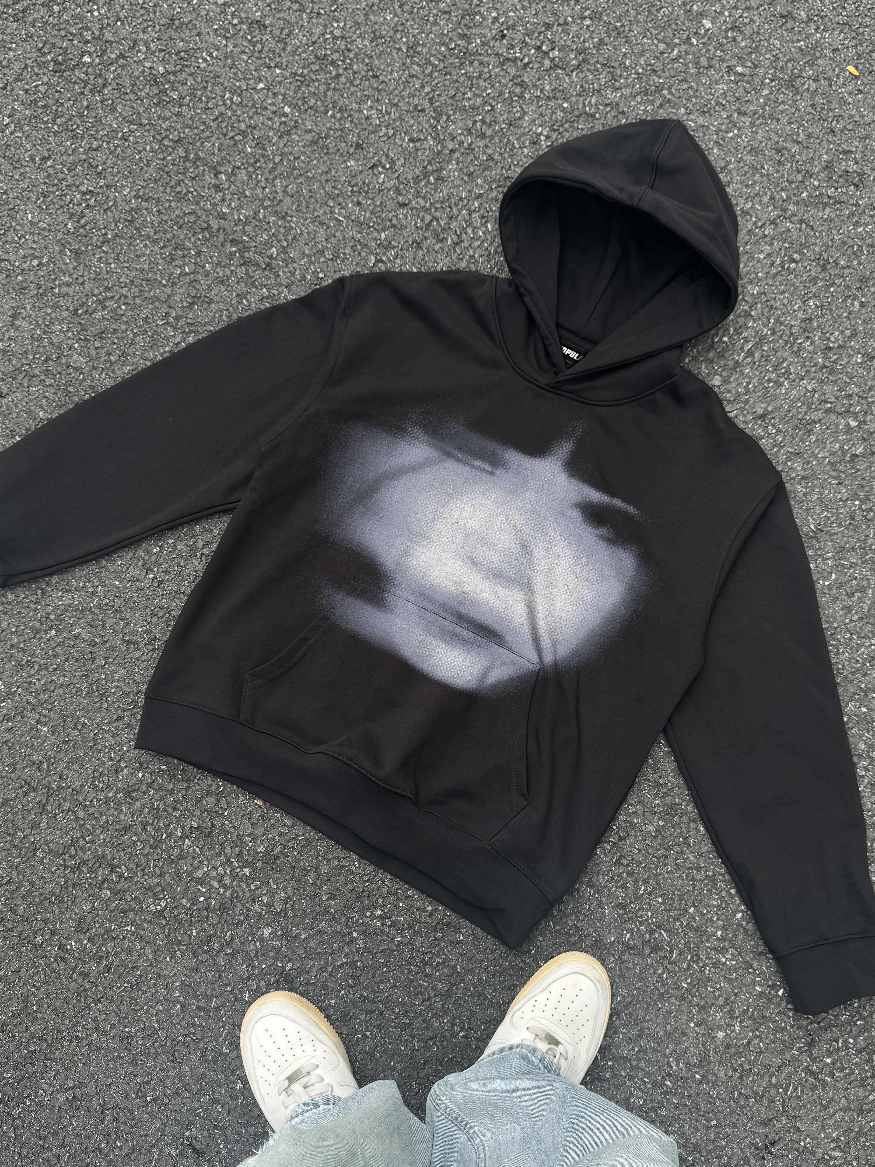 Retro Street Silhouette Thermal Imaging Human Figure Print Acid Wash Hoodie