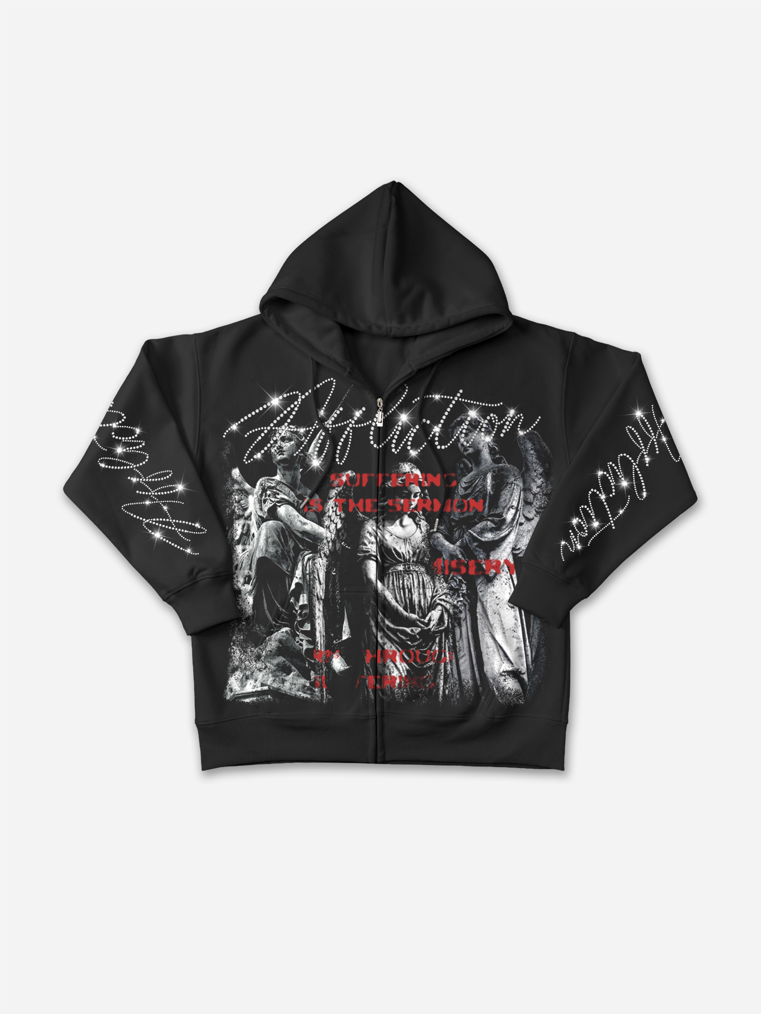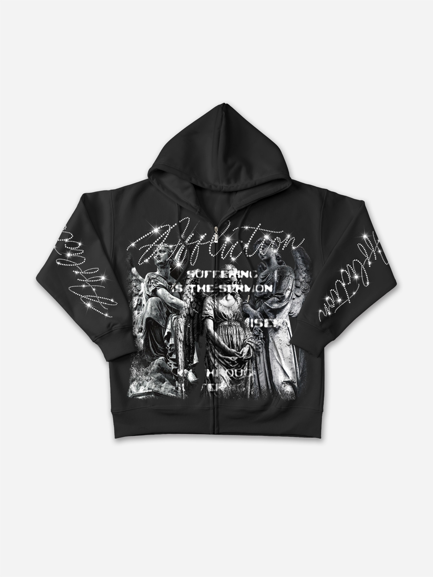 Affliction Angel Statue Vintage Distressed Graphic Oversized Zip Up Hoodie