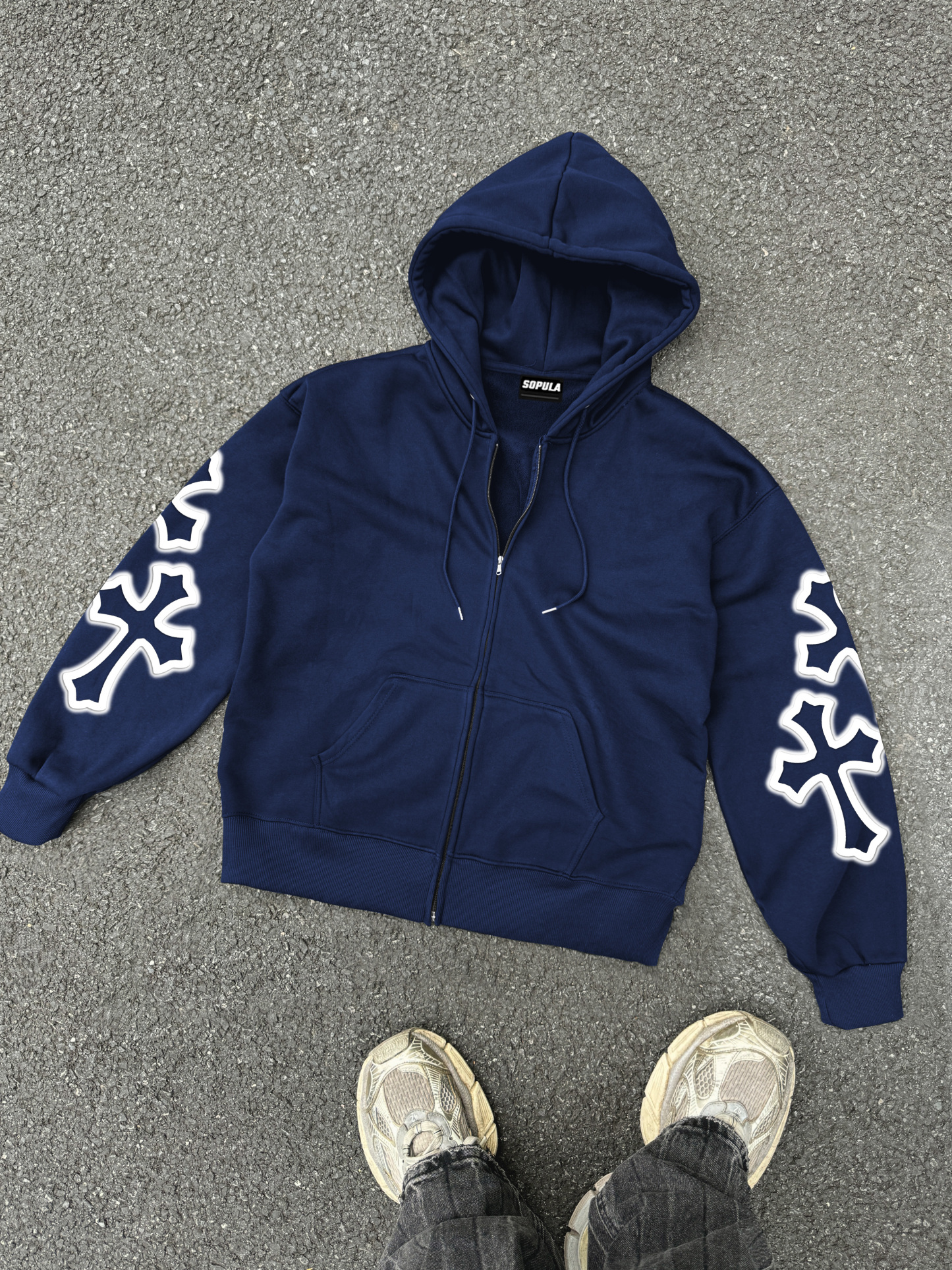 Classic Cross Graphic Oversized Zip Up Hoodie