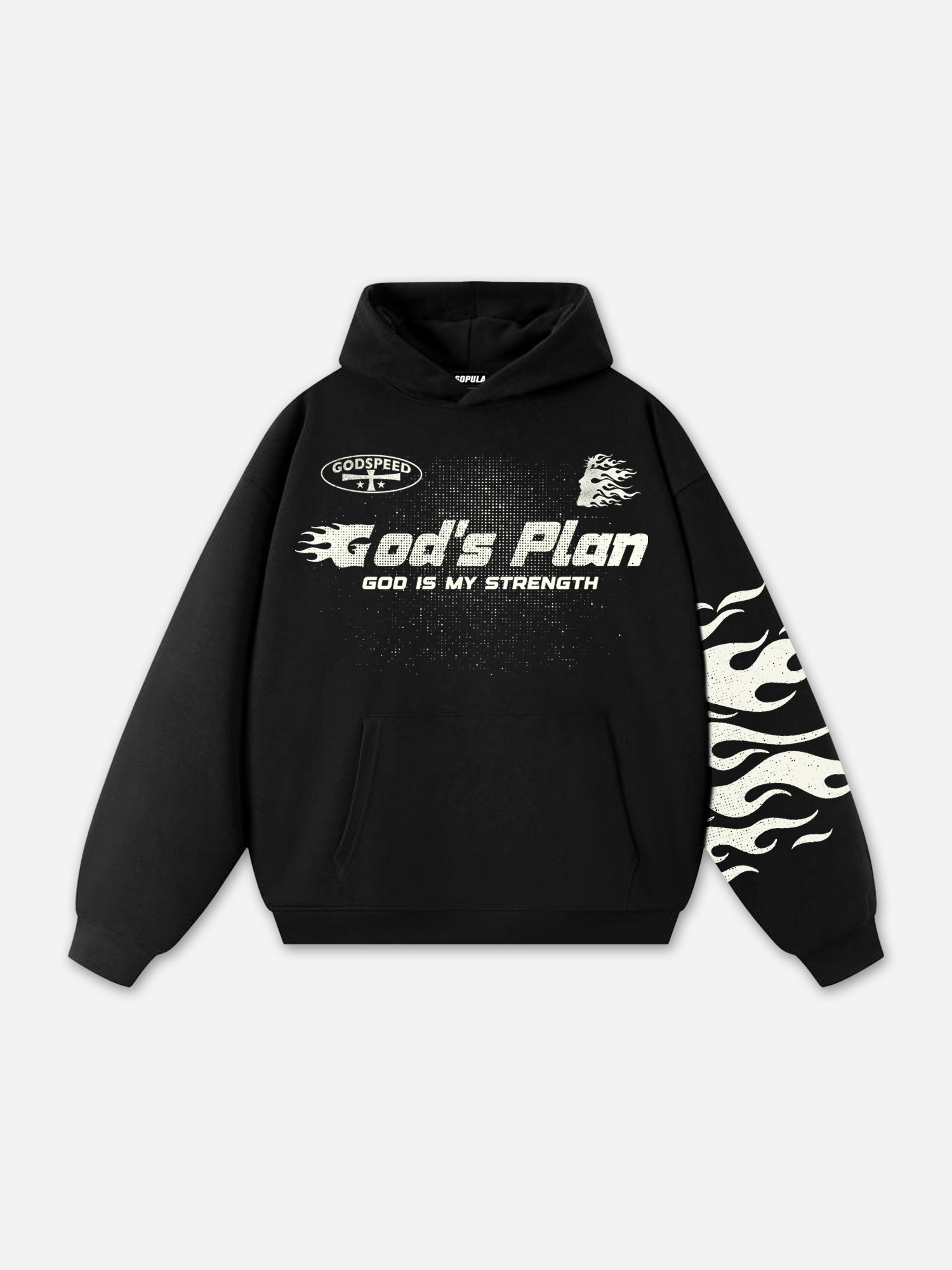 Flame Jesus Silhouette Network Vintage Graphics Cotton Pocket Hoodie
