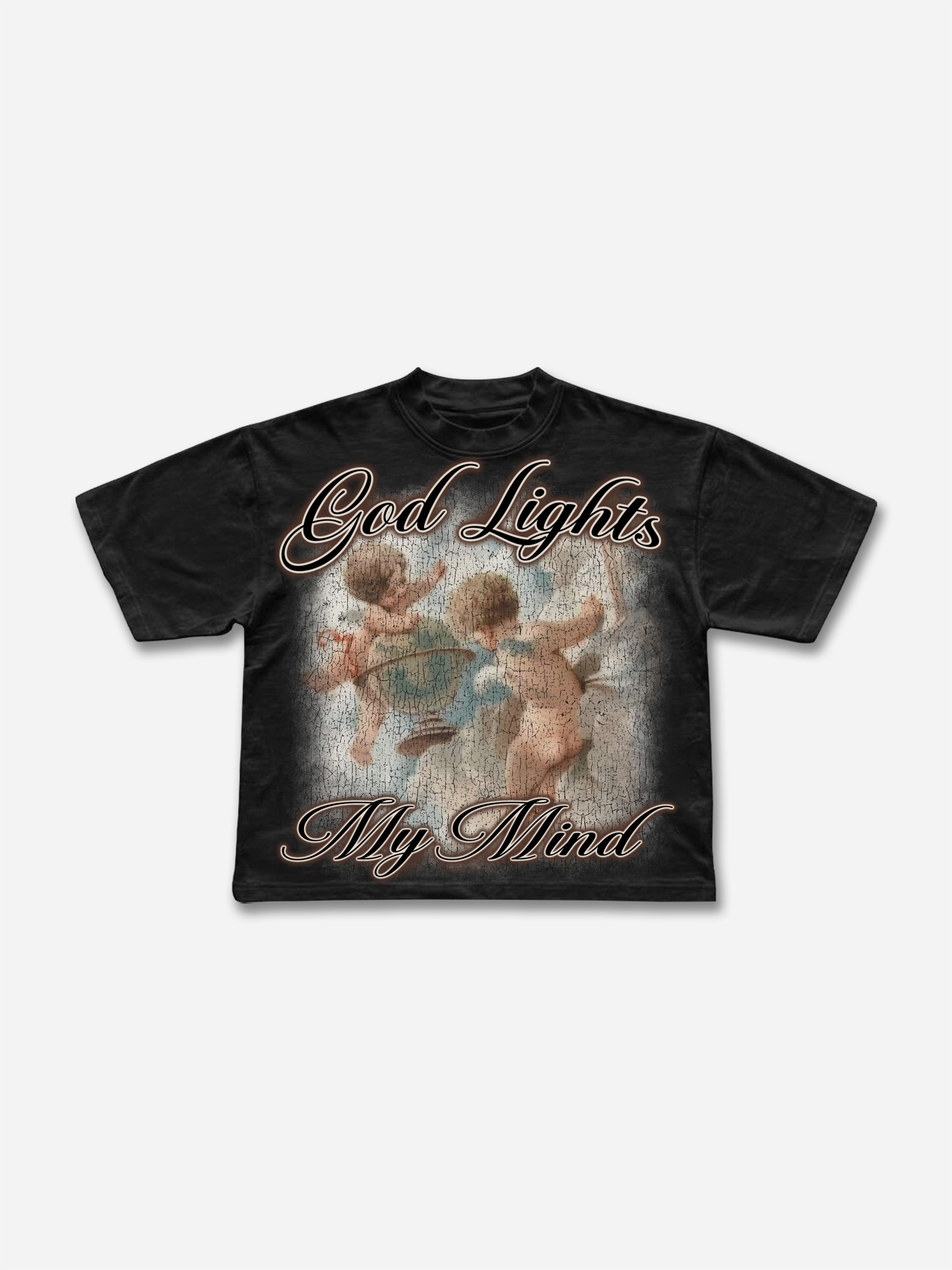 God Lights My Mind Cupid Angel Vintage Distressed Graphic Cropped T-shirt
