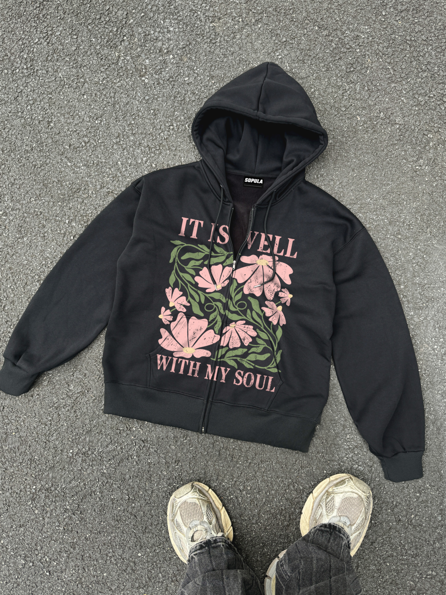 Hellxcity It Is Well With My Soul Graphic Oversized Zip Up Hoodie