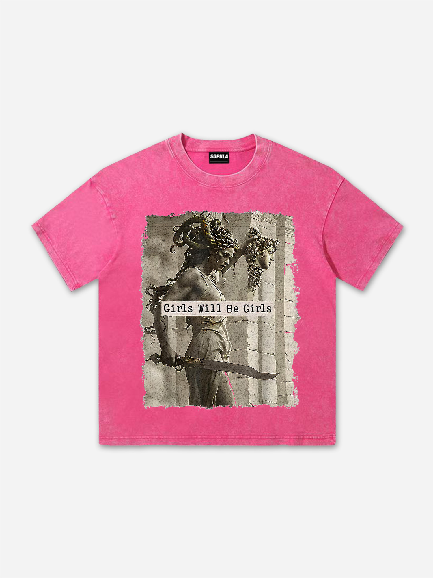 Hellxcity Medusa Girls Will Be Girls Feminist Graphic Acid Washed T-shirt