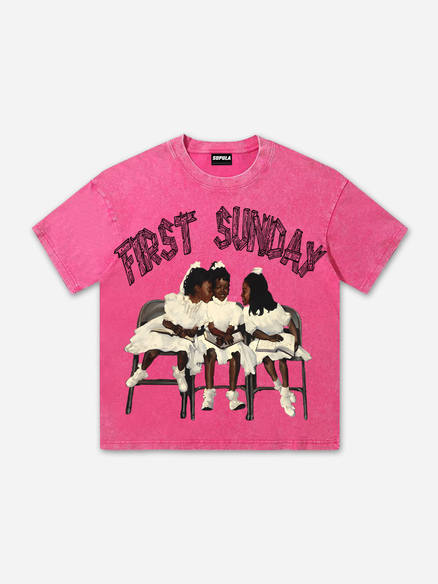Hellxcity Retro First Sunday Faith Graphic Print Acid Washed T-shirt
