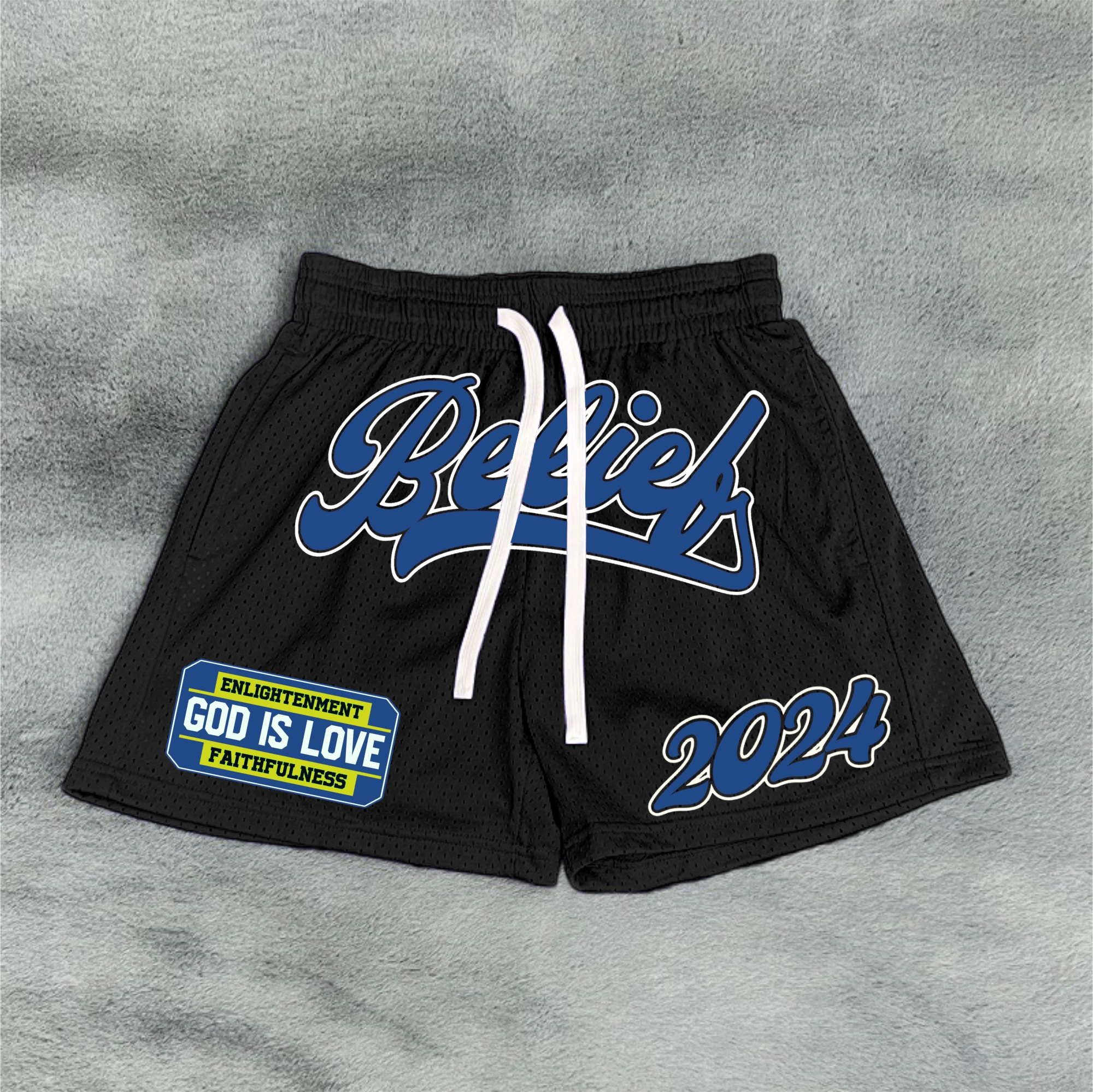 Hellxcity Street Vintage Mesh 2024-Belief In God Dot Printed Shorts