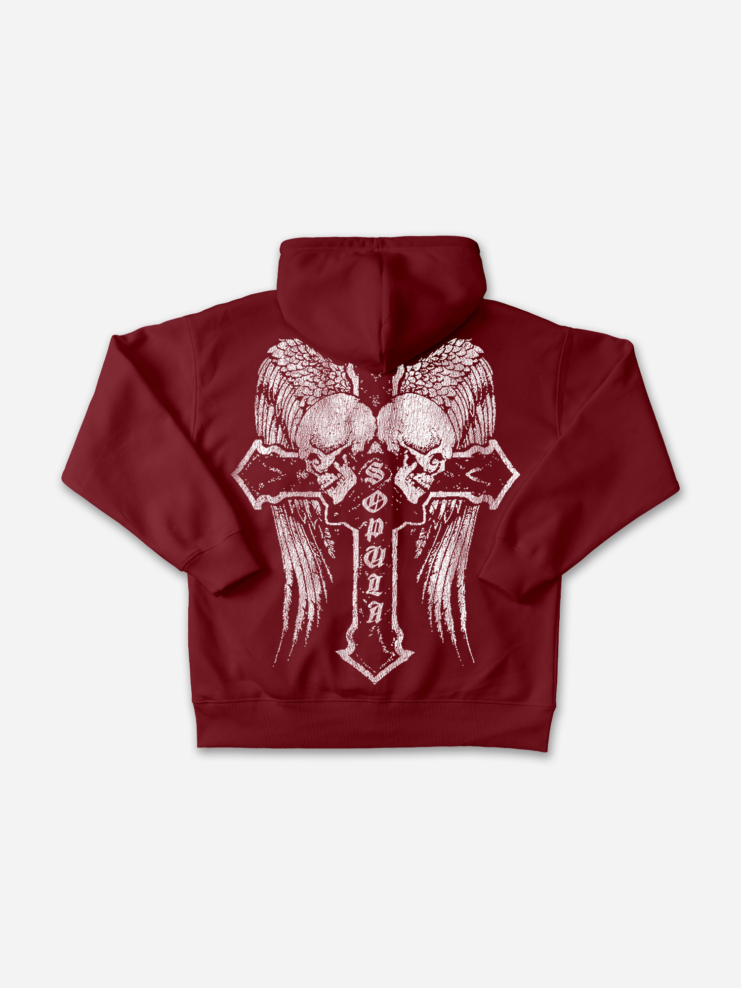 Hellxcity Vintage Skull Cross Totem Graphic Oversized Zip Up Hoodie