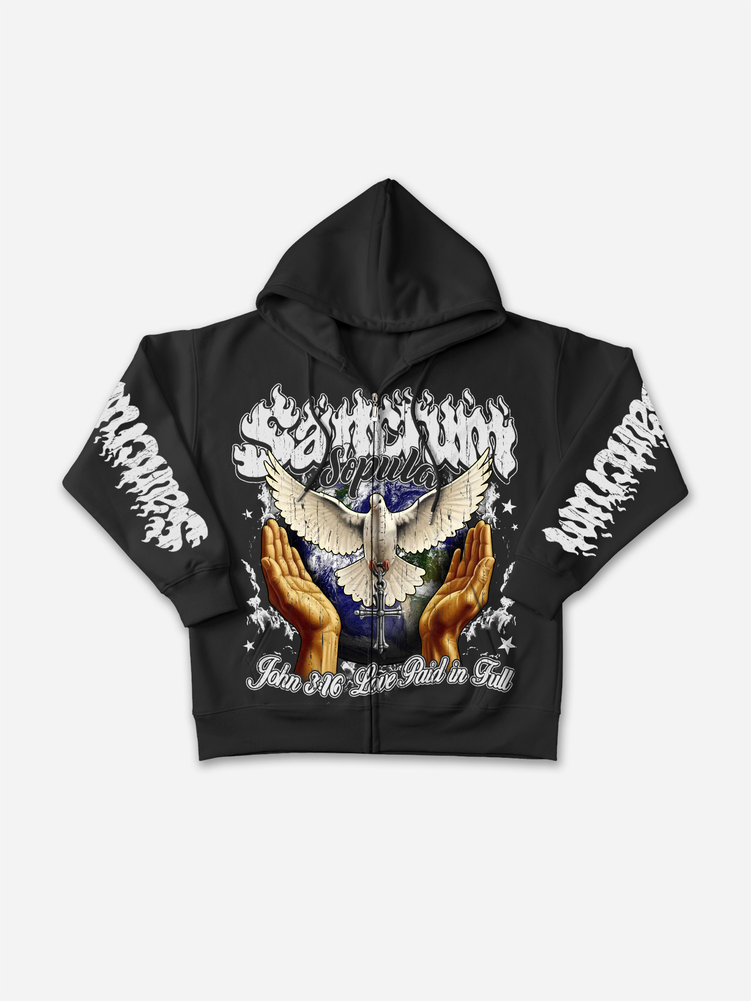 John 3:16 Love Paid In Full Prayer Cross Vintage Graphic Oversized Zip Up Hoodie