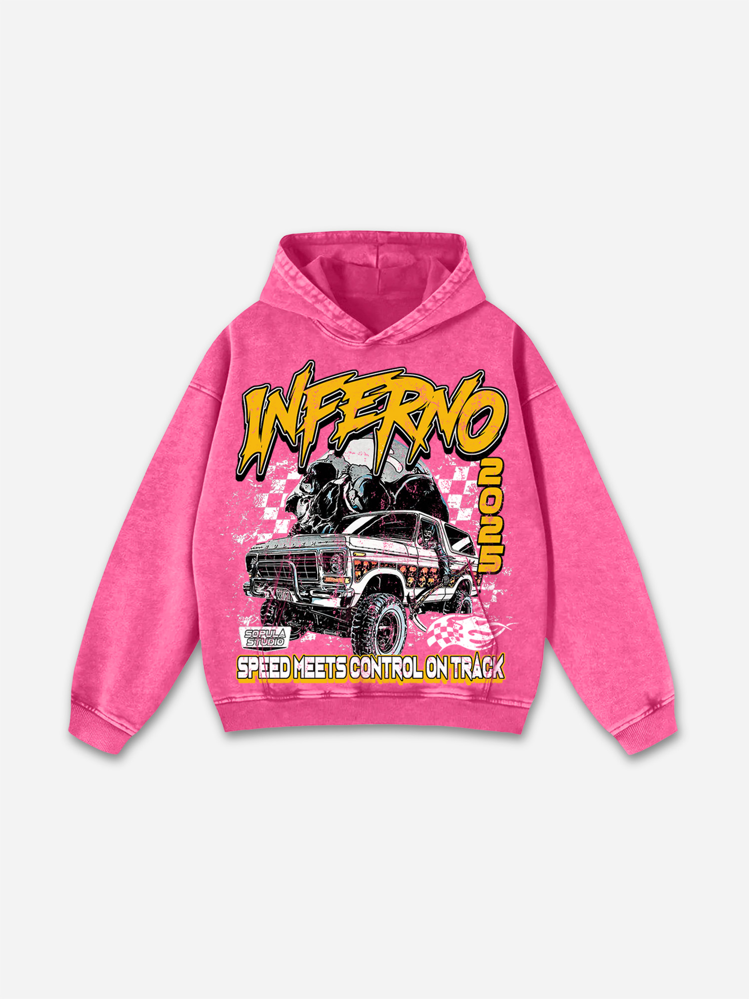 Racing Inferno Skeleton Print Washed Hoodie