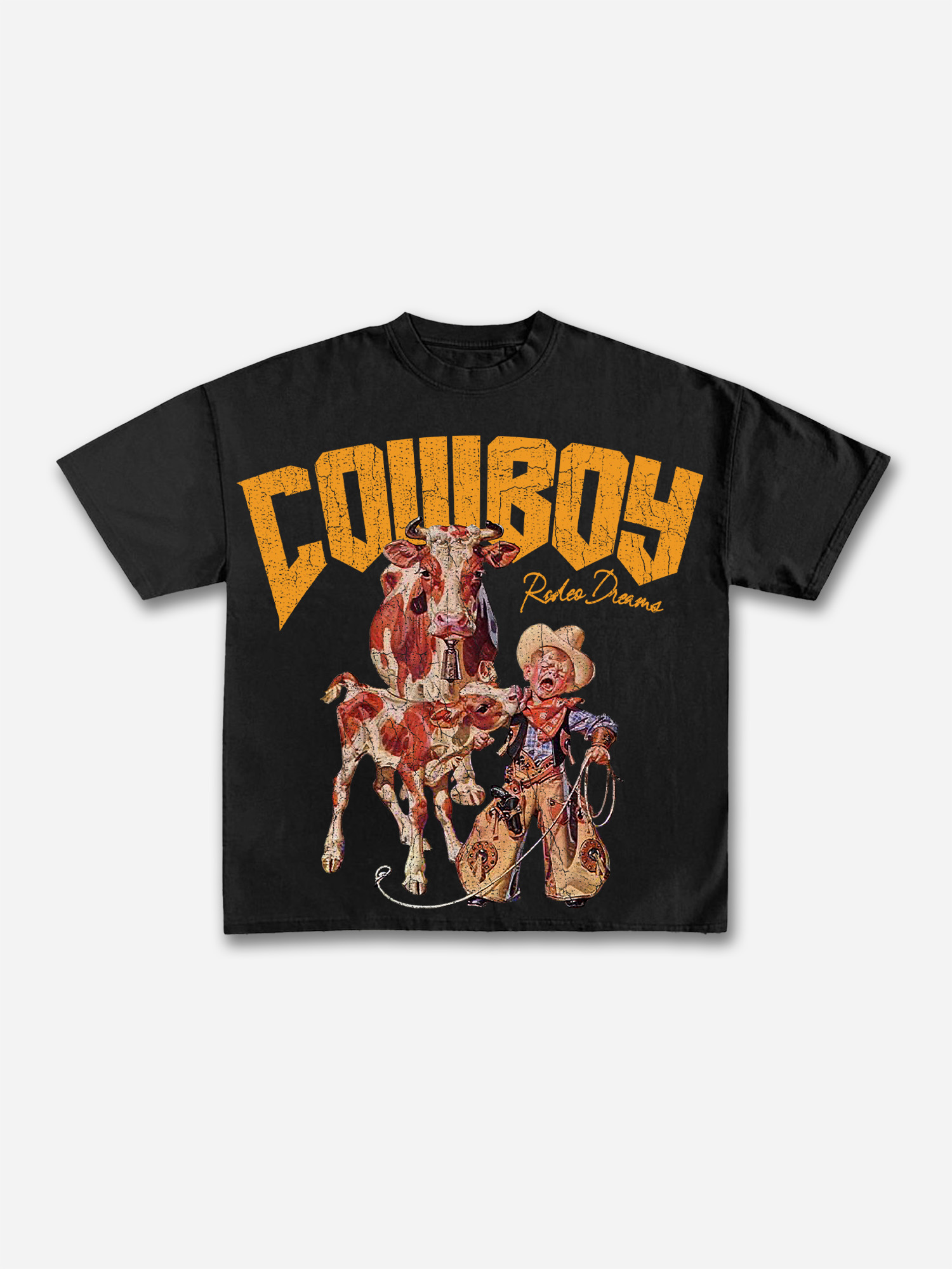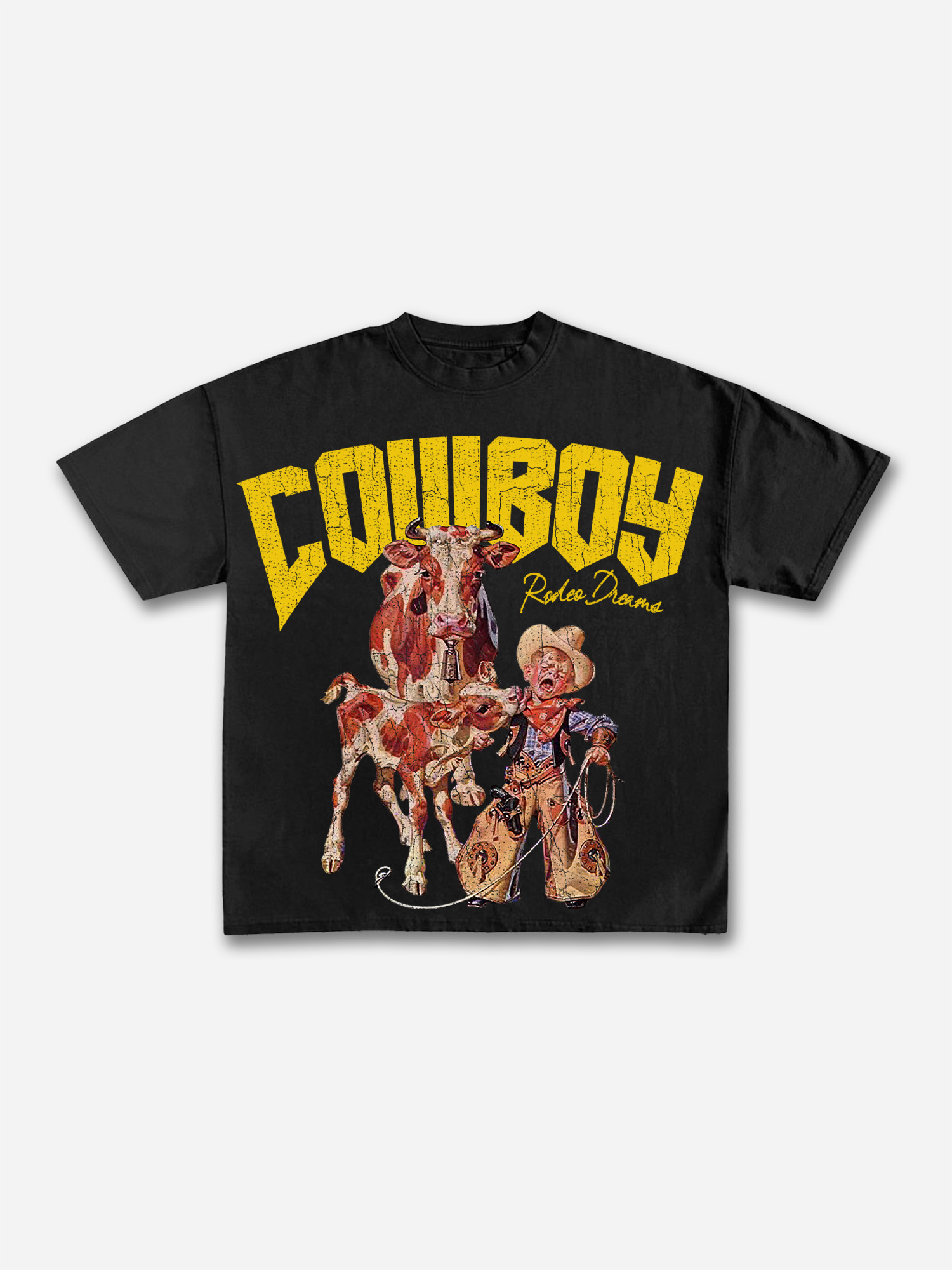 Rodeo Cowboy Fun Graphic Print Cotton T-shirt