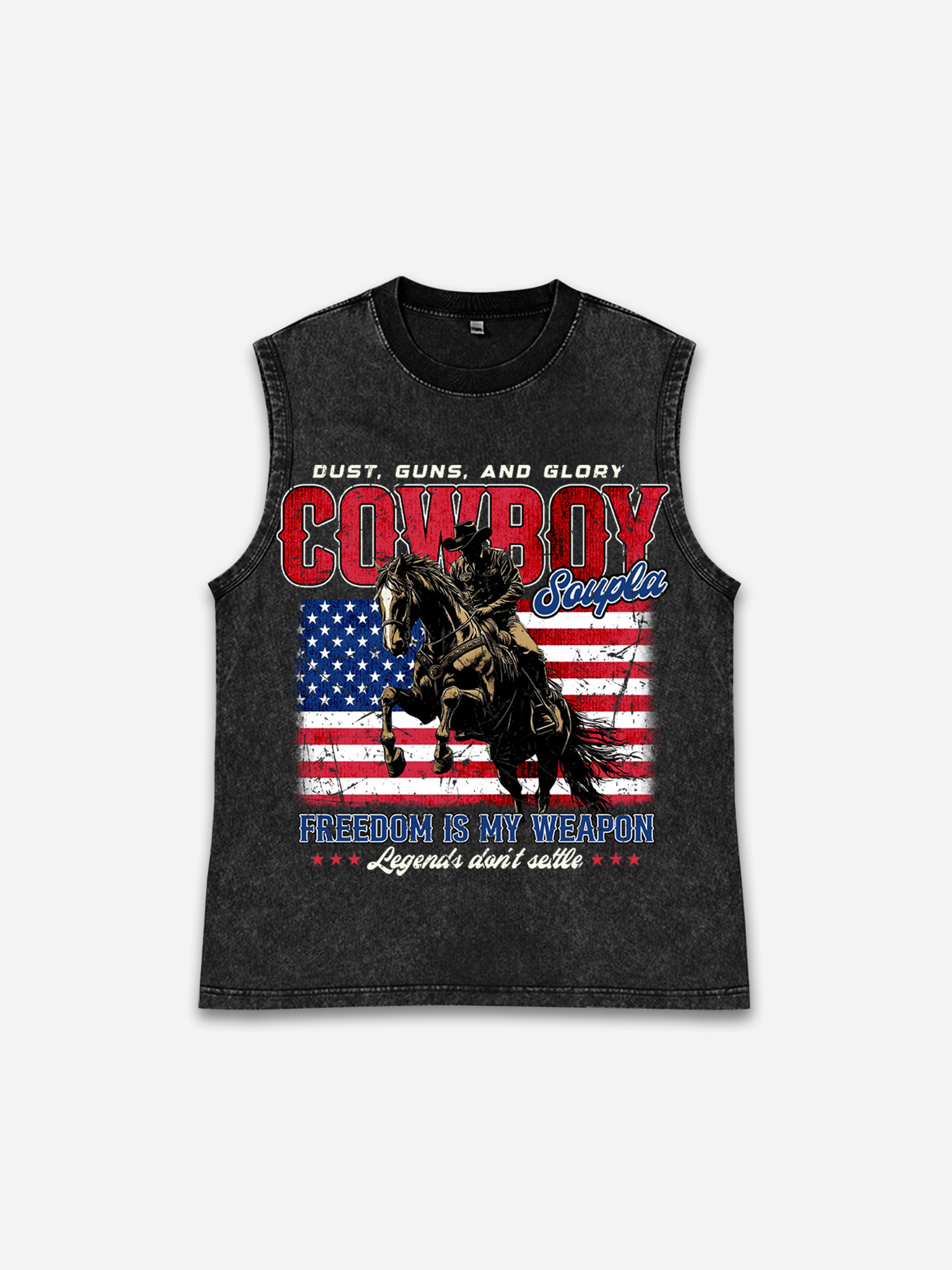Vintage Independence Day, Distressed Denim Graphic Wash Tank Top