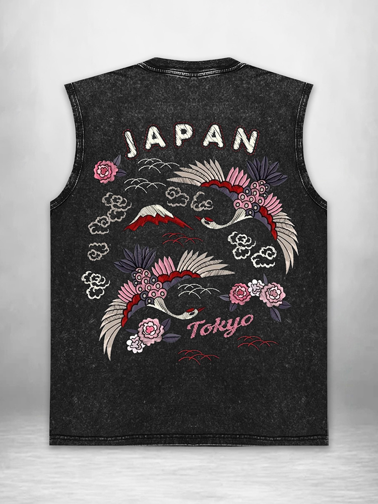 Vintage Sakura Crane Tokyo Graphic Acid Washed Tank